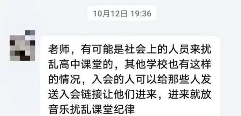 至于網(wǎng)課信息的泄露,一種可能,學(xué)生將自己的網(wǎng)課會(huì)議號(hào)或者密碼不經(jīng)意間,發(fā)布在社交平臺(tái)上,甚至有個(gè)別學(xué)里應(yīng)外合,故意“泄密”;另一種情形,有人組建QQ群,有組織地入侵網(wǎng)課課堂,擾亂課堂秩序,還在QQ群內(nèi)分享入侵的狀況。在群聊中,有網(wǎng)友表示未成年,稱自己輟學(xué)或者暫時(shí)無課,試圖搞惡作劇,并且無視自己的行為對(duì)其他學(xué)生造成了不良影響。