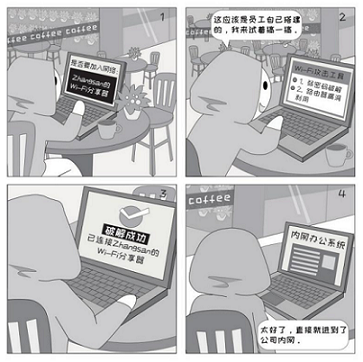 Wi-Fi信號(hào)具有一定的覆蓋范圍,不僅在工作區(qū)域內(nèi)可以連接,甚至在辦公樓附近也可以接入。員工私自搭建的Wi-Fi加密方式通常較弱,一旦被破解,會(huì)導(dǎo)致攻擊者直接訪(fǎng)問(wèn)辦公網(wǎng)絡(luò)的風(fēng)險(xiǎn)。